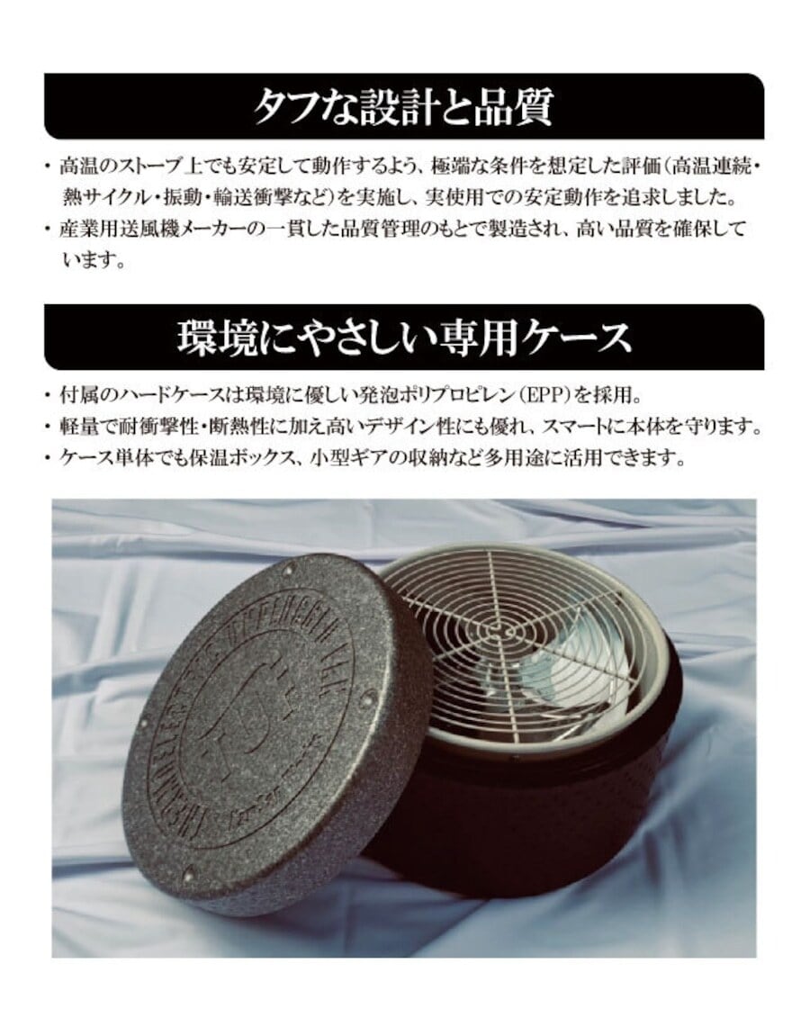 ◎ ストーブに設置後、回転速度が安定するまでは本体が非常に熱くなります。安定する前に取り外す場合は、必ず耐熱手袋を着用し、本体に直接触れないようご注意ください。